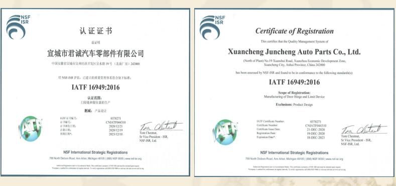 宣城市君誠(chéng)汽車零部件有限公司是專業(yè)生產(chǎn)各類汽車鉸鏈及限位器的民營(yíng)企業(yè),總投資3000余萬(wàn)元,位于宣城高新技術(shù)產(chǎn)業(yè)開(kāi)發(fā)區(qū),緊鄰宣廣、宣蕪高速公路,地理位置優(yōu)越,交通便捷。是“國(guó)家高新技術(shù)企業(yè)、知識(shí)產(chǎn)權(quán)貫標(biāo)企業(yè)、安徽省商標(biāo)示范企業(yè)、安徽省科技型企業(yè)”,已獲得國(guó)家發(fā)明專利18項(xiàng),實(shí)用新型發(fā)明專利4項(xiàng)。主要從事各類汽車門鉸鏈及限位器的設(shè)計(jì)、研發(fā)、生產(chǎn)、和銷售,具有專業(yè)的合作團(tuán)隊(duì)。自2015年正式生產(chǎn)至今,已形成一整套完整的生產(chǎn)、質(zhì)量管理體系。并已通過(guò)國(guó)家強(qiáng)制性產(chǎn)品認(rèn)證“3C”體系認(rèn)證及IATF16949國(guó)際質(zhì)量體系認(rèn)證。 在生產(chǎn)設(shè)備上,公司擁... 【查看詳細(xì)】