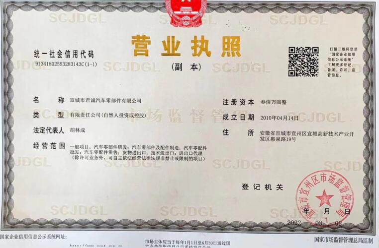 宣城市君誠(chéng)汽車零部件有限公司 地址:安徽省宣城高新技術(shù)產(chǎn)業(yè)開(kāi)發(fā)區(qū)惠泉路19號(hào)